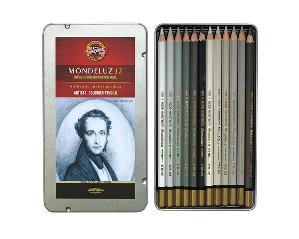 12 Eckige Pastellkreiden in verschiedenen Grautönen KOH-I-NOOR Toison D`or