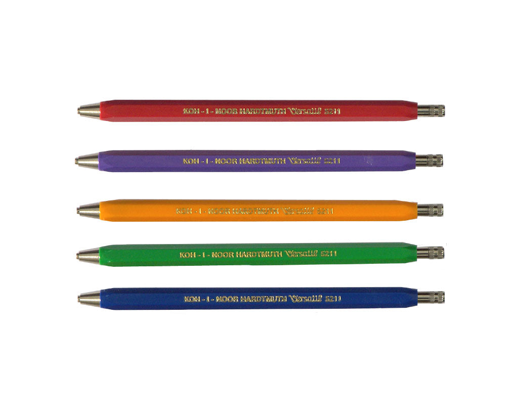 Der KOH-I-NOOR Versatil 5211 ist ein sechskantiger Fallbleistift mit hochwertiger Metall-Mechanik und einer Hülle aus robustem Kunststoff. Er liegt besonders leicht in der Hand.