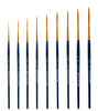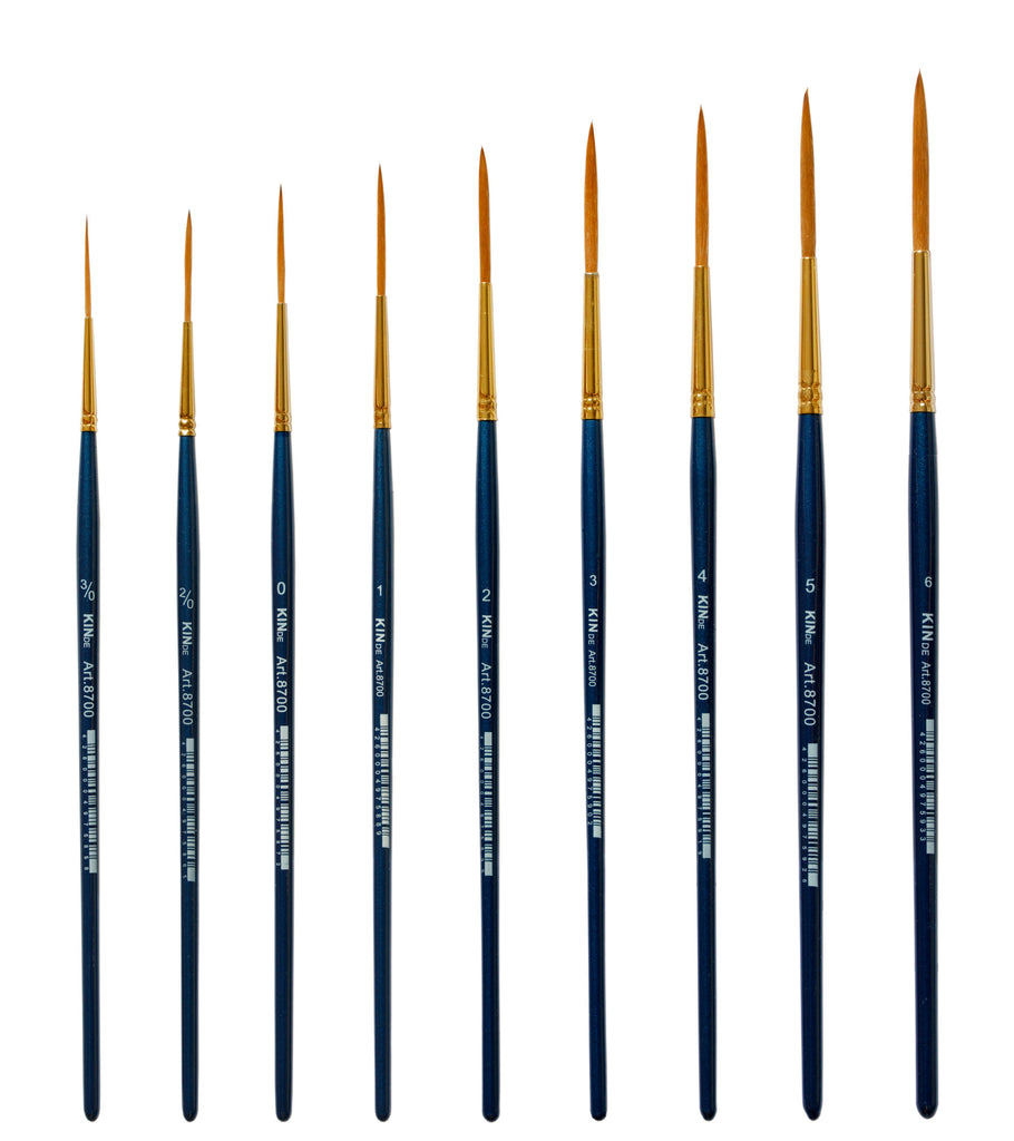 Sehr gut verarbeitete Schlepperpinsel aus hochwertigem Kunsthaar. Ideal für Linien, Schriften und Details.Die Haare sind in einer nahtlosen Goldzwinge gefasst. Die Pinsel haben kurze blau lackierte Stiele.
